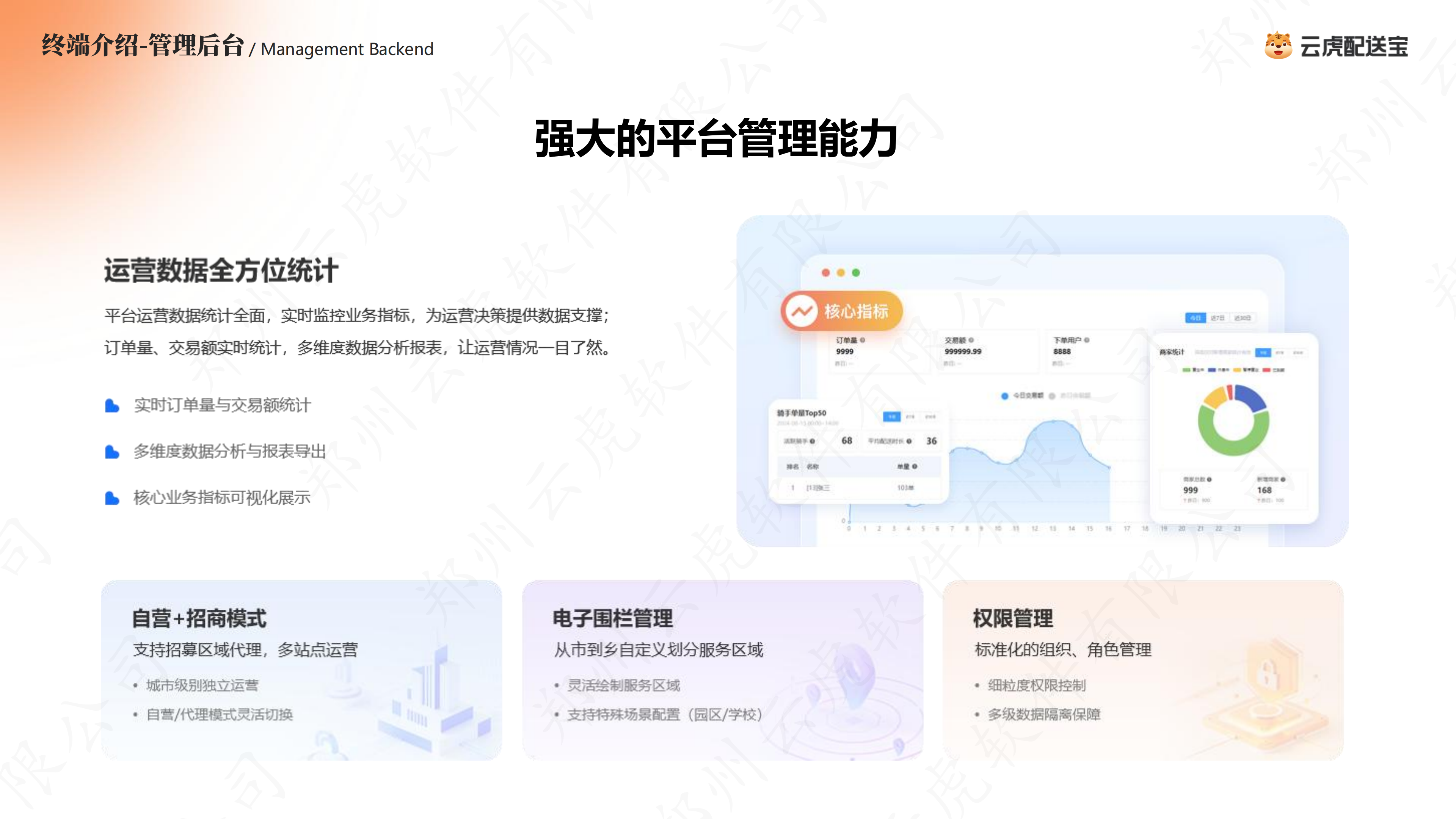 全终端配套:提供运营管理后台、骑手配送APP、商家发单APP全终端解决方案,运营端可实现站点、骑手、商家、财务全流程管理;骑手端具备接单、抢单、路线规划、收入统计、保险对接功能;商家端可实现门店入驻、自动发单、配送实时监控,全链路数据打通。