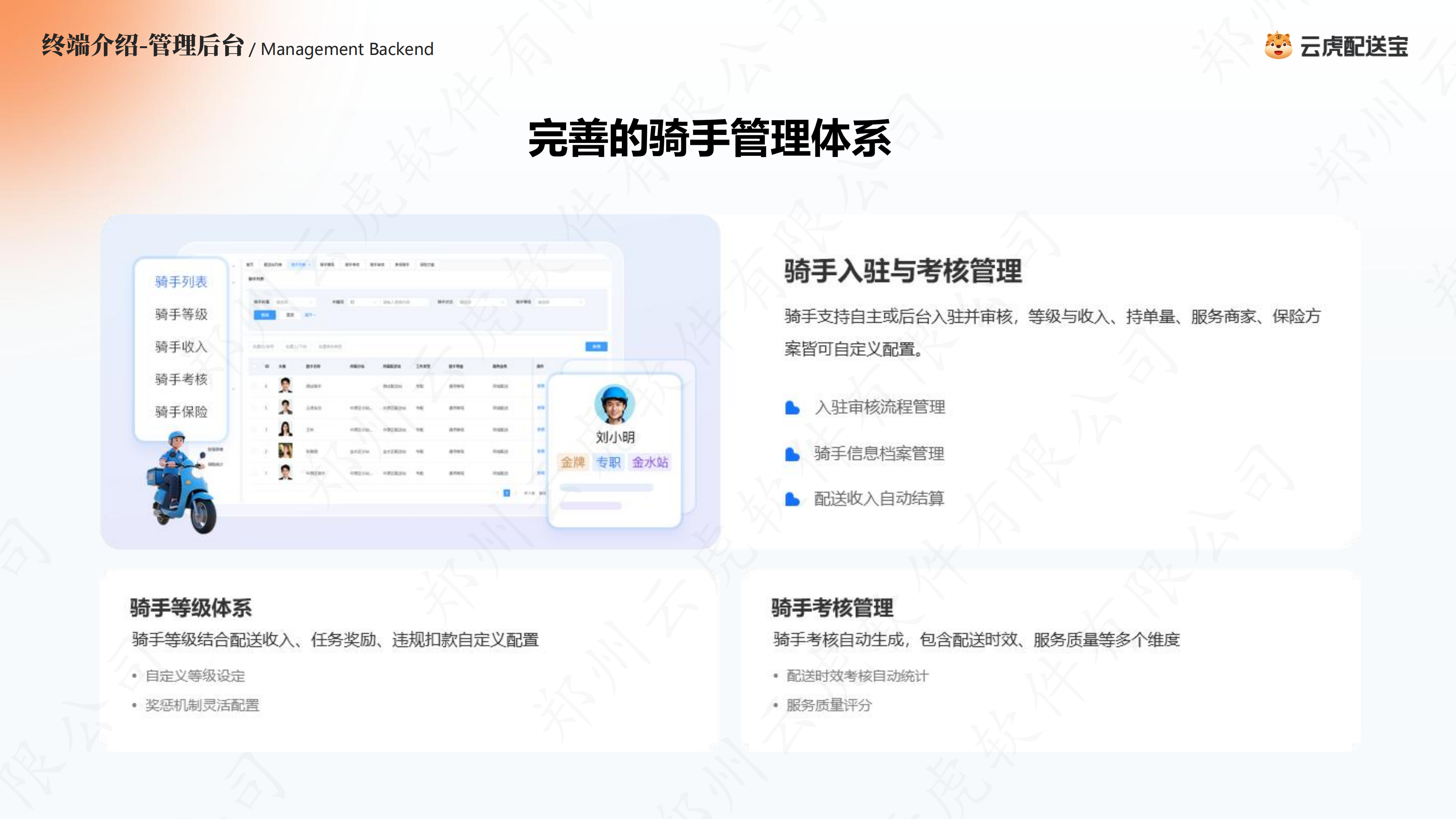 基于监测数据建立常态化的迭代优化机制:一是功能迭代,云虎配送宝提供正版终生授权、源码私有化部署,支持二次开发,可根据平台的业务发展需求定制开发新功能,比如针对夜间配送场景开发夜间运力调度功能,针对生鲜场景开发冷链温控监控功能等;二是算法优化,智能调度系统通过机器学习持续优化配送模型,参考原创力文档《2025年城市配送行业研究报告》的技术发展趋势,未来系统可接入无人配送、绿色配送等新技术,持续提升配送效率;三是运营优化,基于各站点的运营数据,针对性调整不同区域的服务标准、定价策略、运力配置,实现精细化运营。