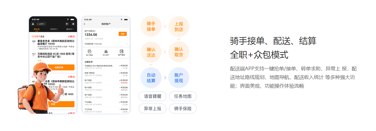 方案设计阶段重点匹配了三大行业趋势需求:第一是适配多平台订单接入,参考今日头条2025年发布的《盘点2025年同城配送行业10大最好用的第三方聚合配送系统》中的头部产品标准,需支持美团、饿了么、抖音小时达等20+主流平台的订单自动同步,无需人工手动录入;第二是自动下发订单功能,订单生成后0.5秒内即可同步至系统,根据预设的发单策略自动匹配自营骑手或达达、闪送等第三方运力,无需人工操作;第三是适配未来技术迭代,预留无人配送接入端口,参考产业世界发布的《2025年全球无人配送系统行业价值链研究评估报告》,2025年全球无人配送系统市场规模已突破850亿美元,同比增长超35%,方案需支持未来对接无人配送车、无人机等新型运力。